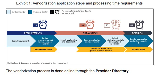 “Vendorization” is the term used to describe the approval process to provide services through regional centers to individuals with intellectual and developmental disabilities.